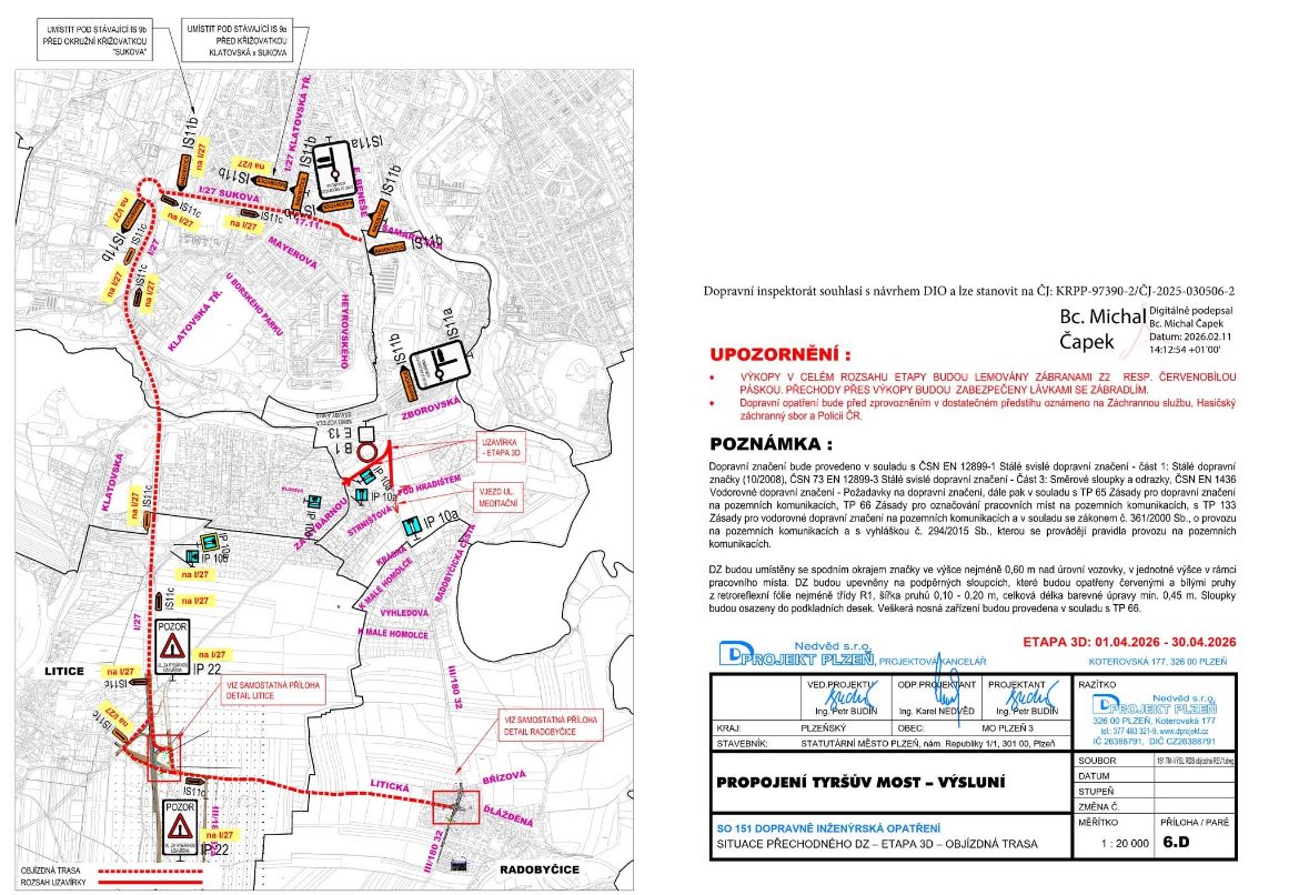 Od 1.4. do 30.4.2026 proběhne uzavírka Zborovské ulice z důvodu pokračujících prací na stavbě "Propojení Tyršův most - Výsluní".