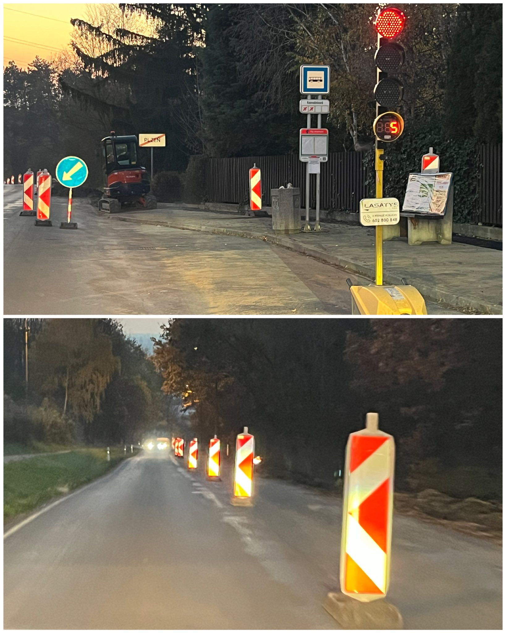 První listopadový týden začaly práce v bezpostřední blízkosti vozovky na rozhraní Černic a Radobyčic z důvodu instalace sloupů veřejného osvětlení, které budou nově osazeny na pravé straně silnice směrem do Radobyčic.